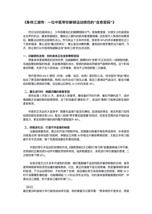 身体江湖传:一位中医带你解锁运动损伤的"自愈密码"