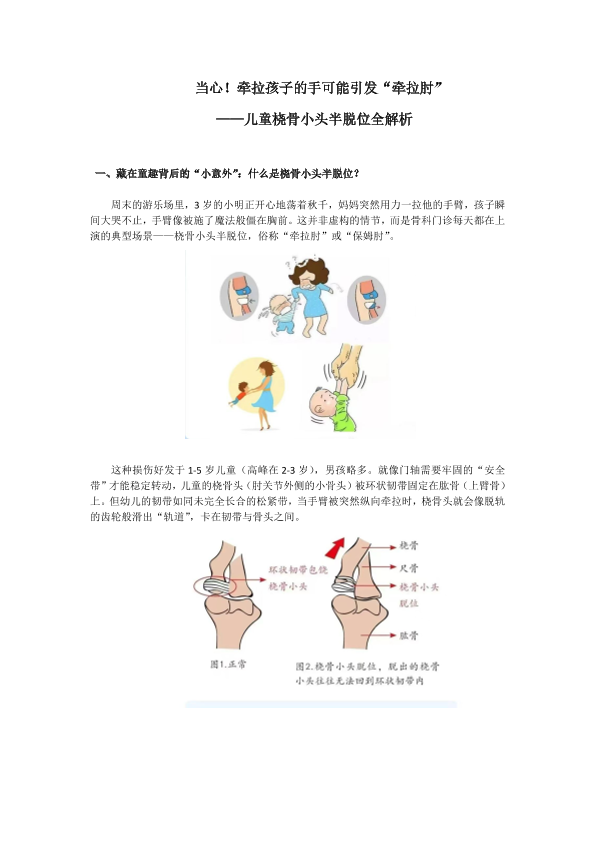 当心!牵拉孩子的手可能引发“牵拉肘” ——儿童桡骨小头半脱位全解析