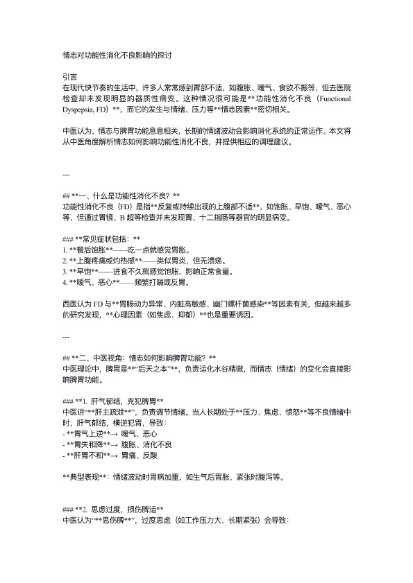 情志对功能性消化不良影响的探讨