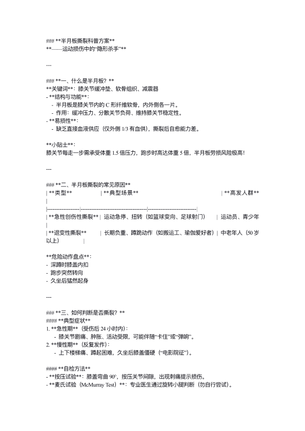 半月板撕裂科普