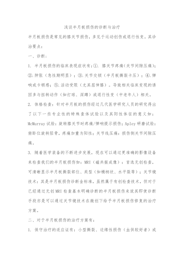 浅谈半月板损伤的诊断和治疗