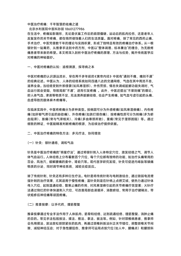 中医治疗疼痛:千年智慧的祛痛之道
