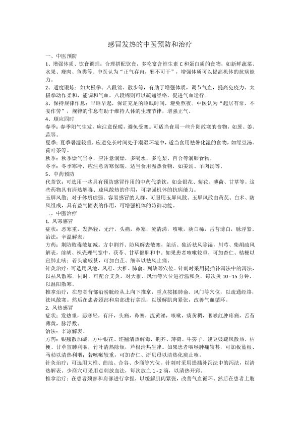 感冒发热的中医预防与治疗