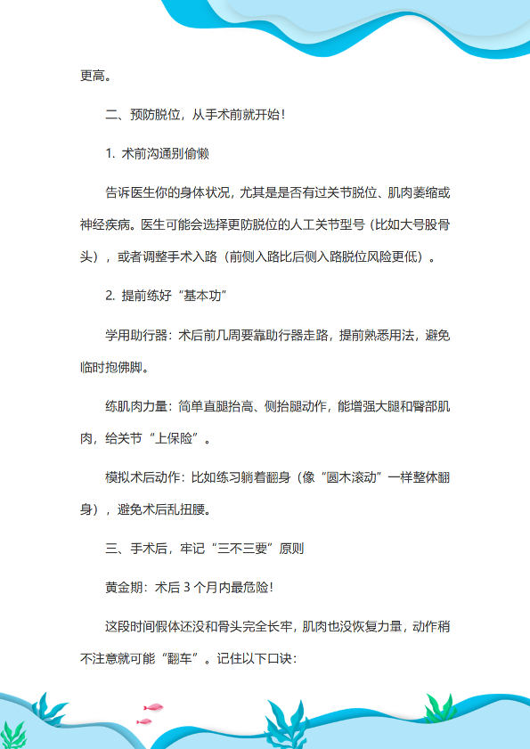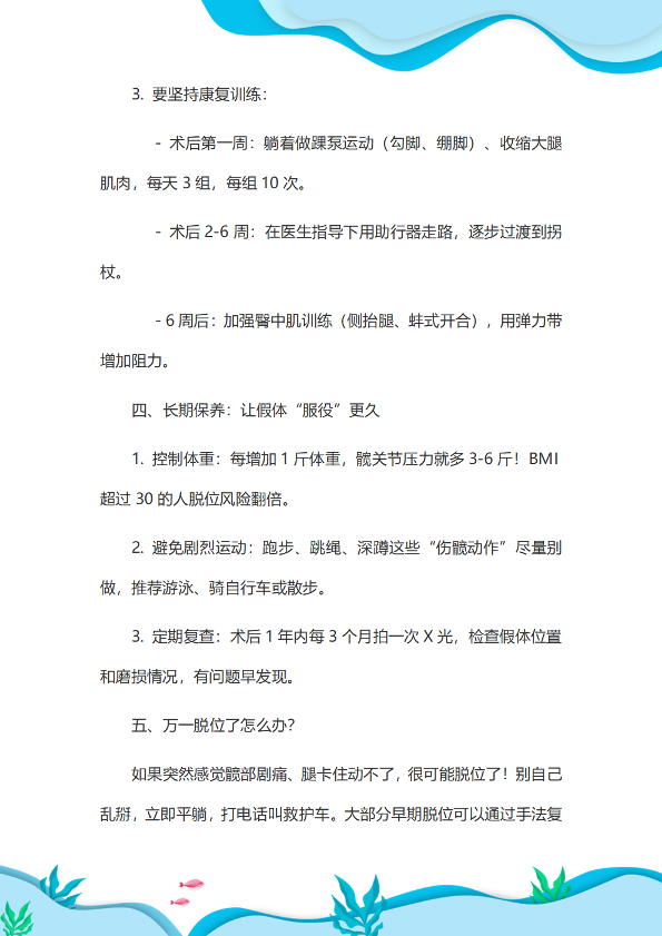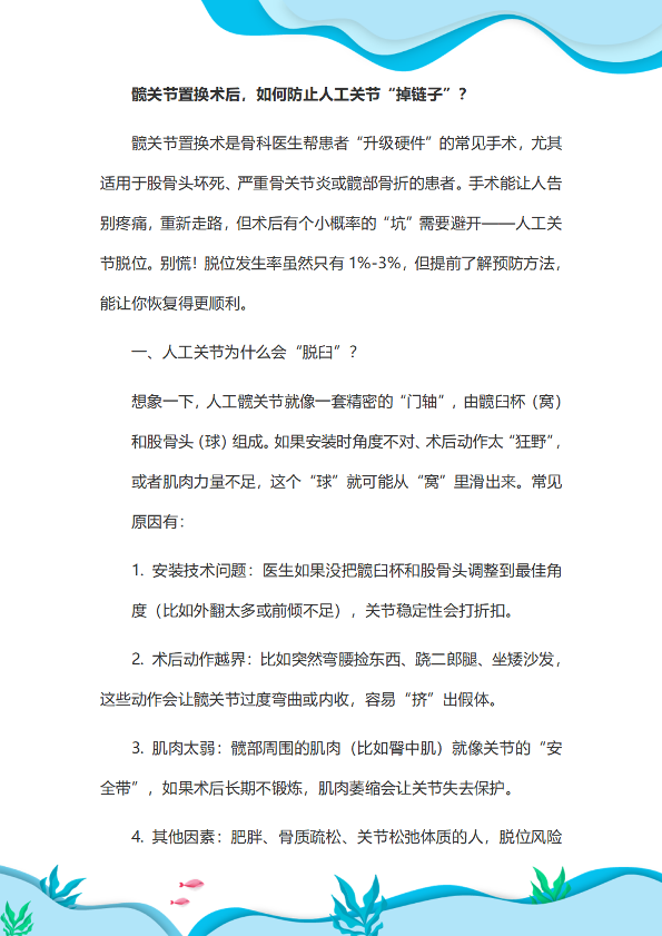 髋关节置换术后,如何防止人工关节“掉链子”? 髋关节置换术后,如何防止人工关节“掉链子”?