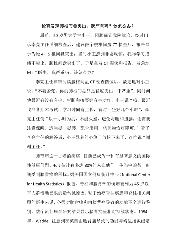检查发现腰椎间盘突出,我严重吗?该怎么办?