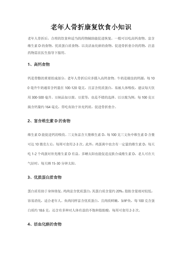 老年人骨折康复饮食科普