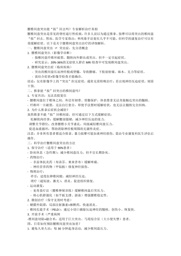 腰椎间盘突出能按回去吗