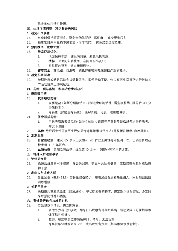骨质疏松症的日常护理及预防