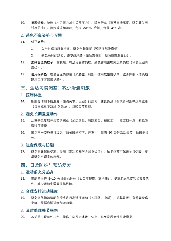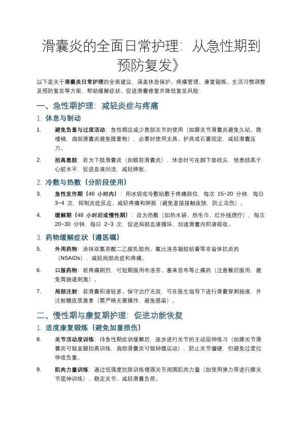 滑囊炎的全面日常护理