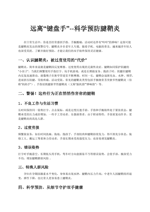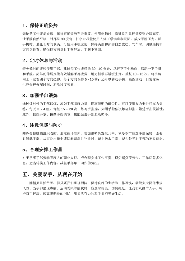 远离键盘手-科学预防腱鞘炎