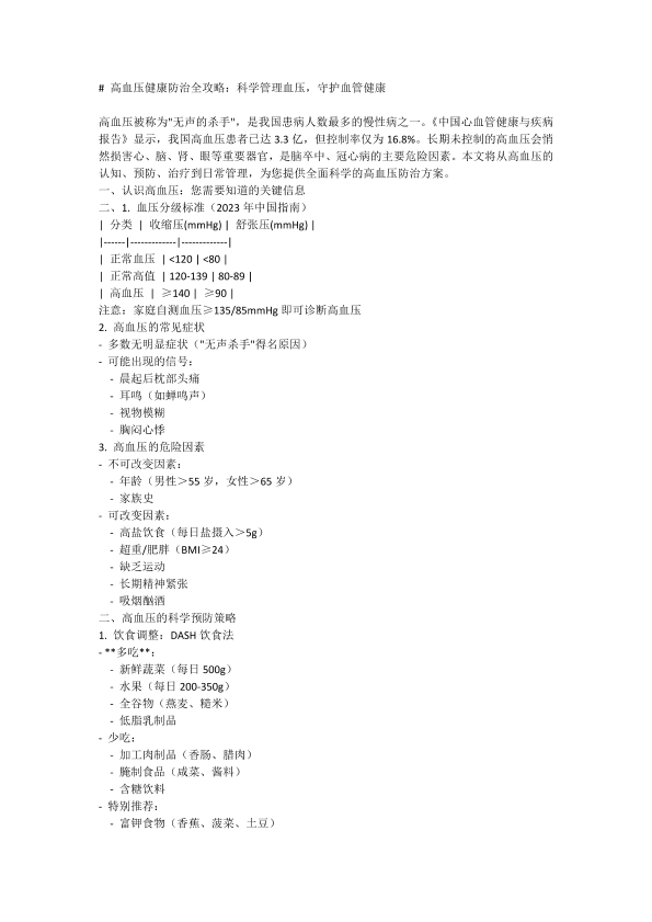 高血压健康防治全攻略:科学管理血压,守护血管健康_