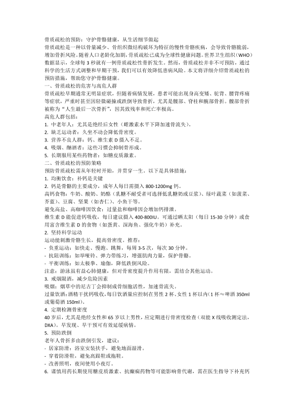 骨质疏松的预防:守护骨骼健康,从生活细节做起