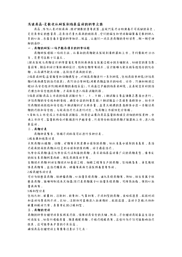 浅谈药品-无数次从研发到临床应用的科学之旅