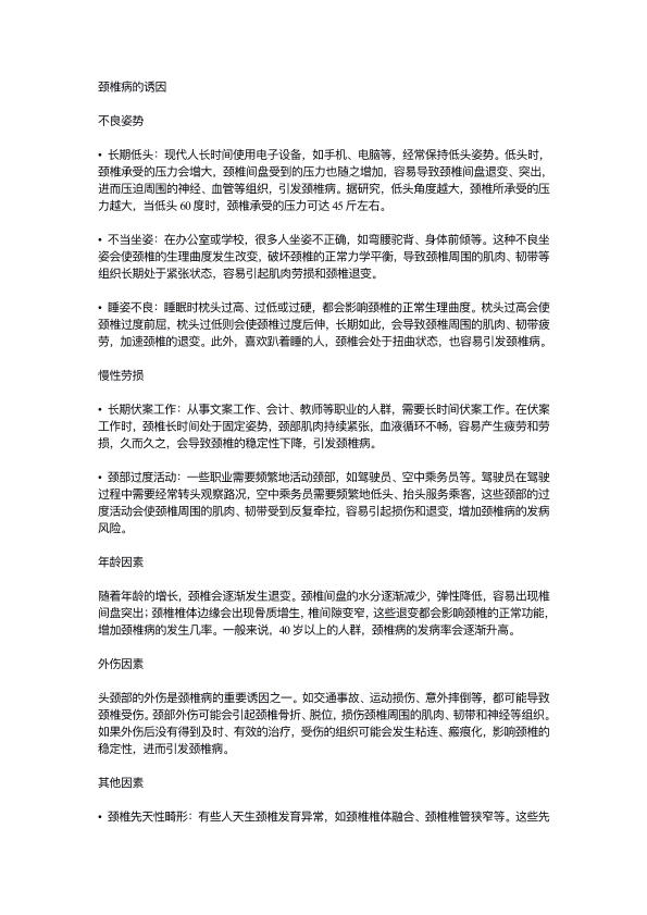 颈椎病的诱因
