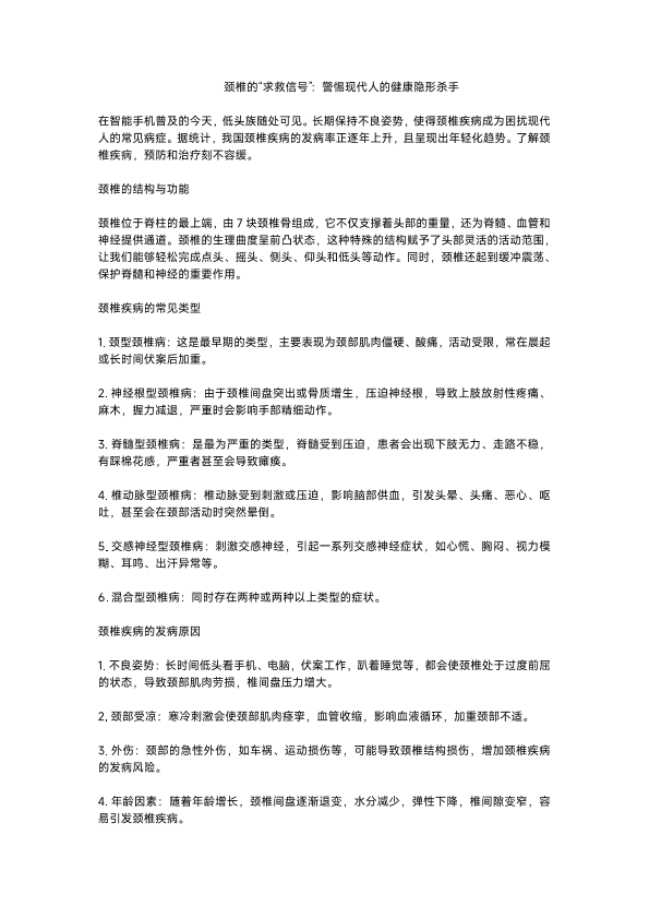 颈椎的“求救信号”:警惕现代人的健康隐形杀手