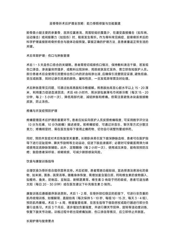胫骨骨折术后护理全攻略
