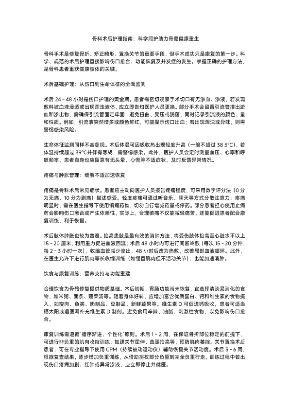 骨科术后护理指南