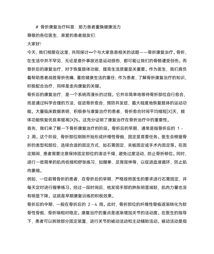 骨折康复治疗科普