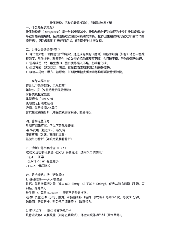 ⻣质疏松: 沉默的⻣骼“窃贼” , 科学防治是关键
