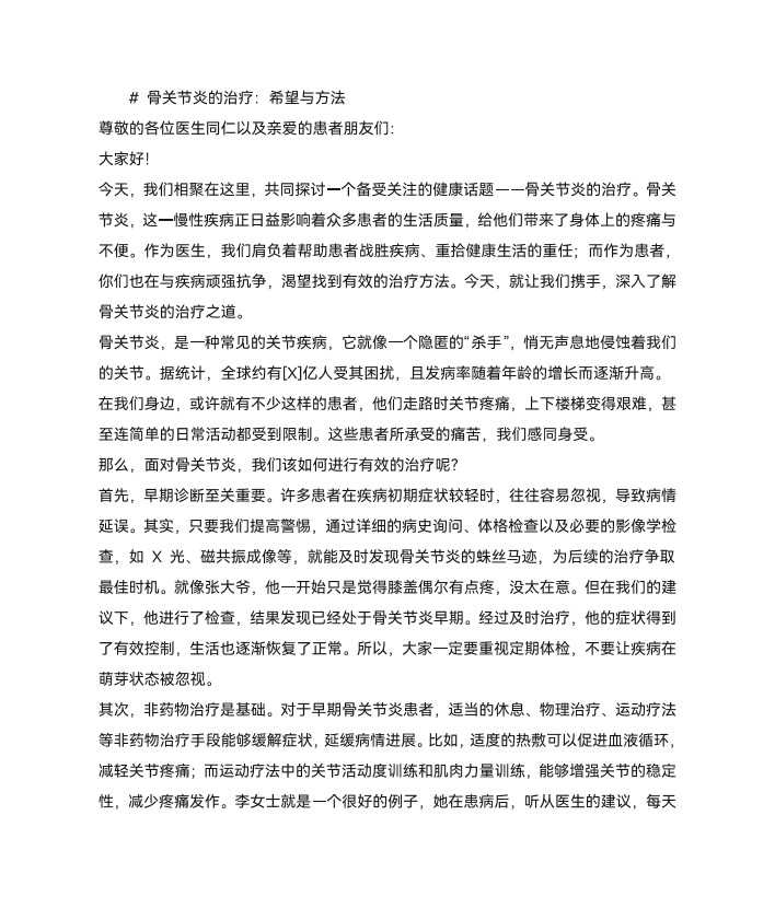骨关节炎的治疗