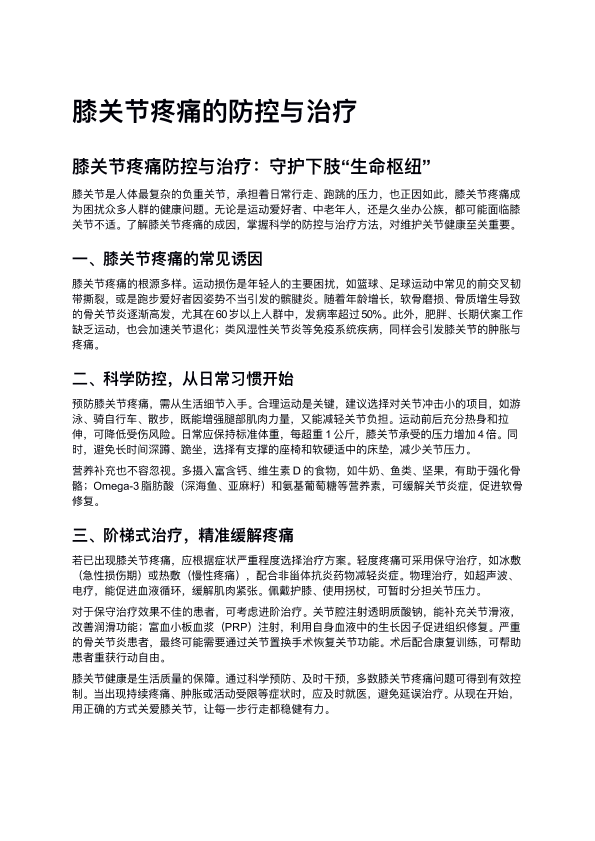 膝关节疼痛的防控与治疗