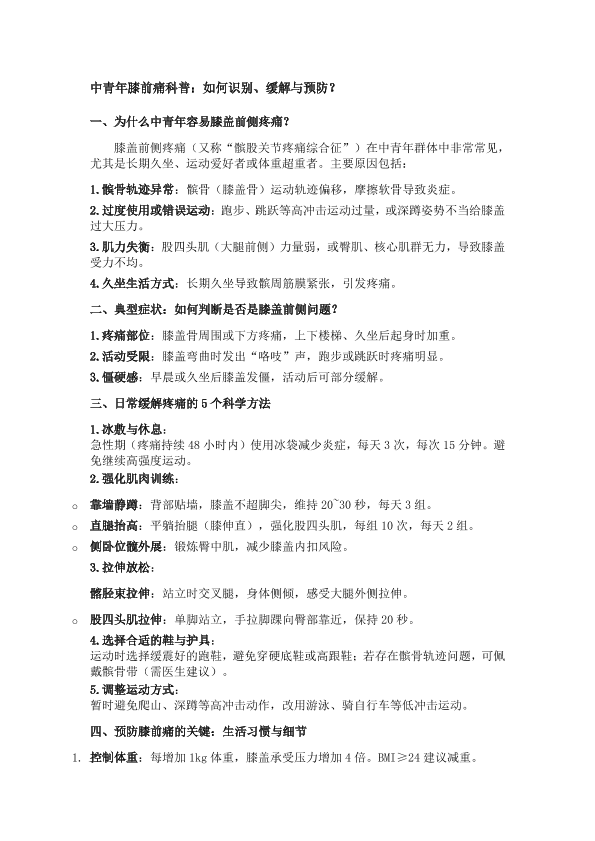 科普文章+中青年膝前痛防治普及+石丽军