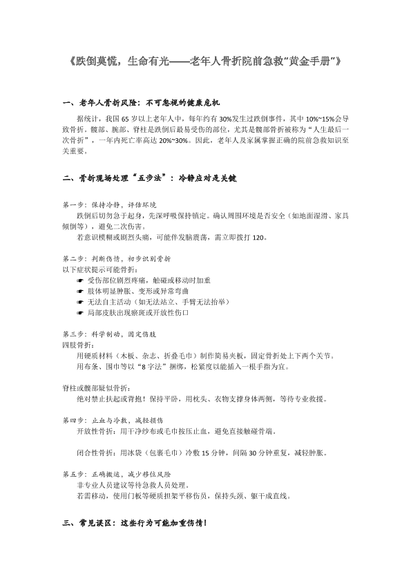 《跌倒莫慌,生命有光——老年人骨折院前急救“黄金手册”》