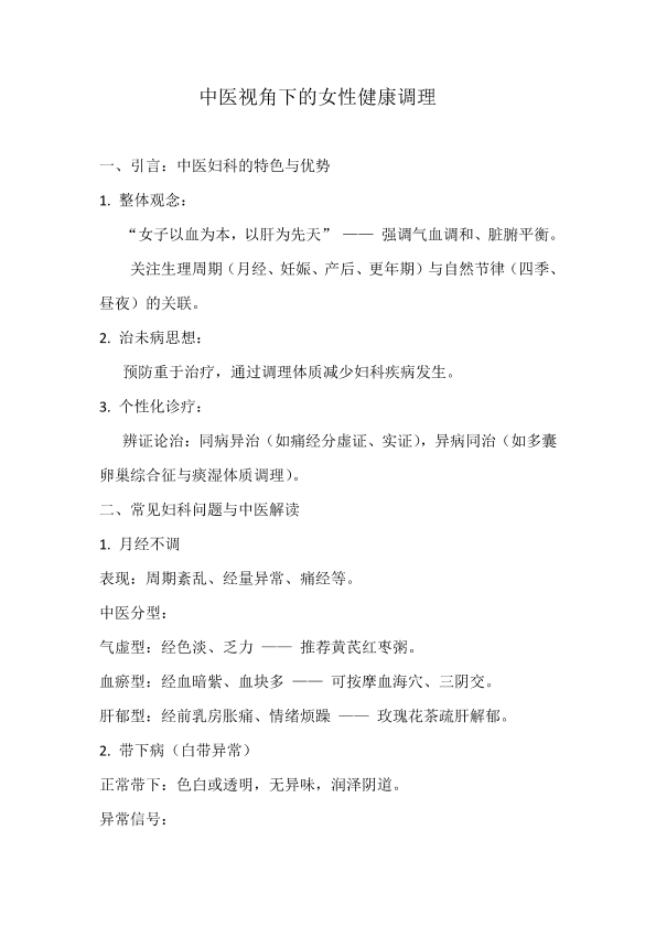 中医视角下的女性健康调理
