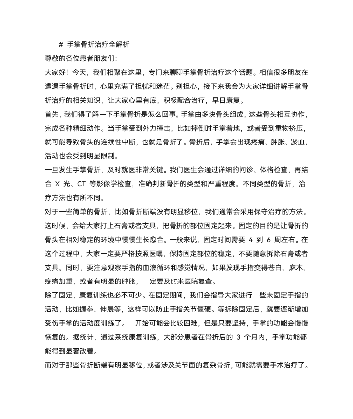 手掌骨折治疗