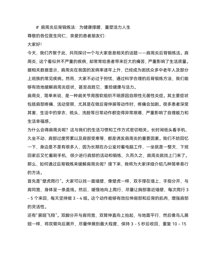 肩周炎后背锻炼法
