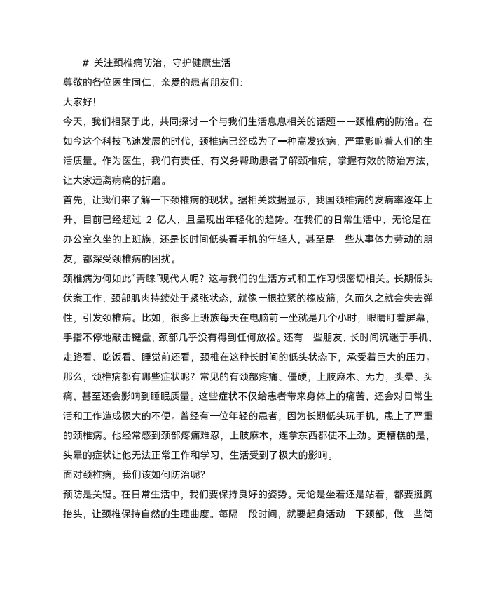 颈椎病的防治