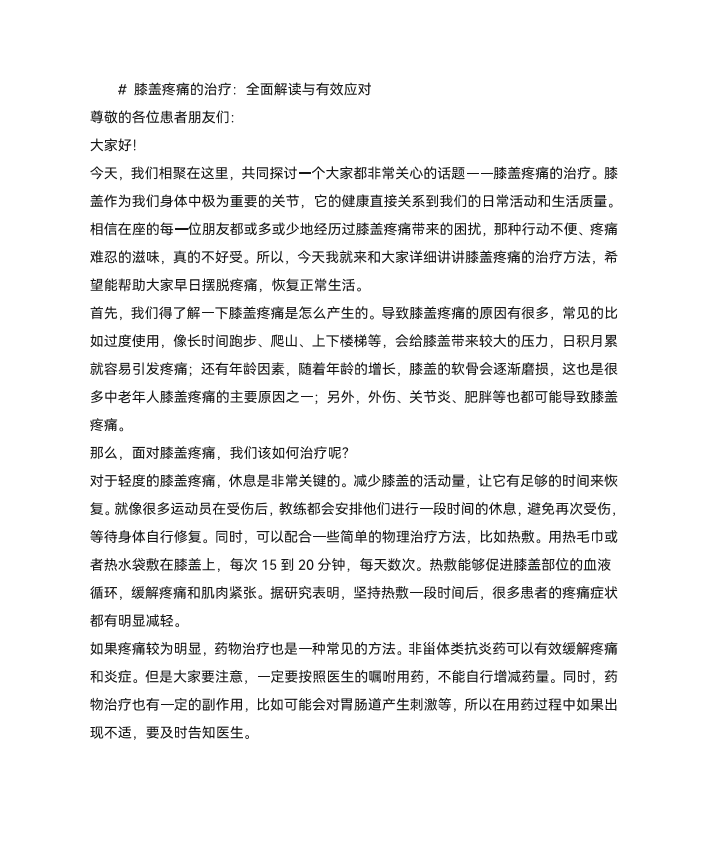 膝盖疼痛的治疗