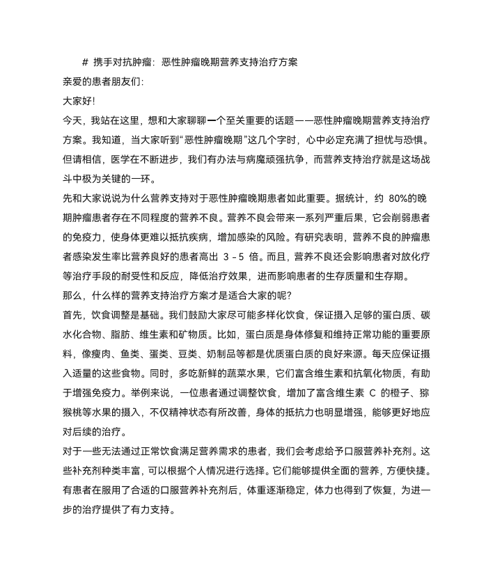 恶性肿瘤晚期营养支持方案