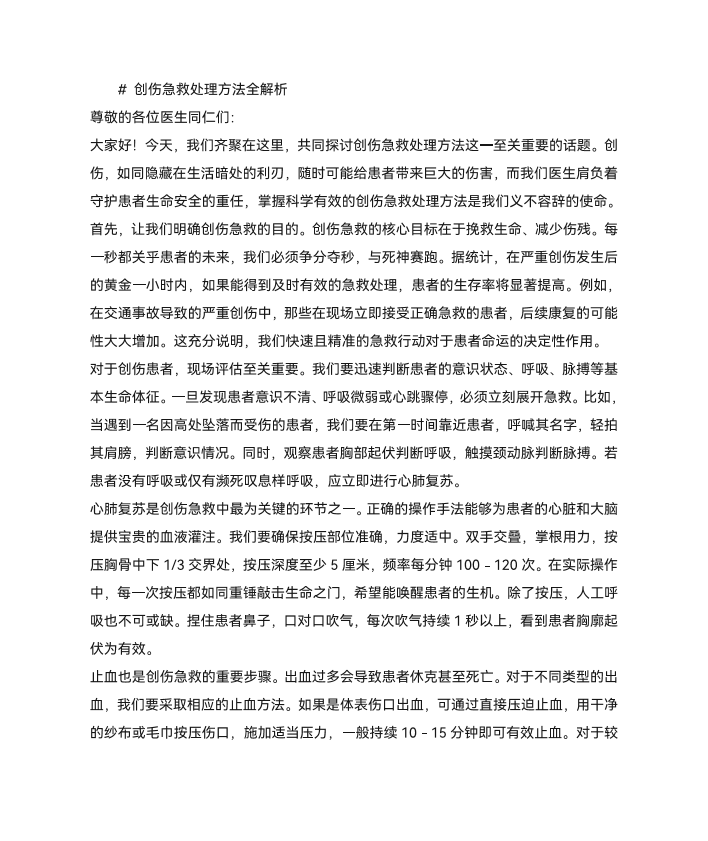 创伤急救处理方法