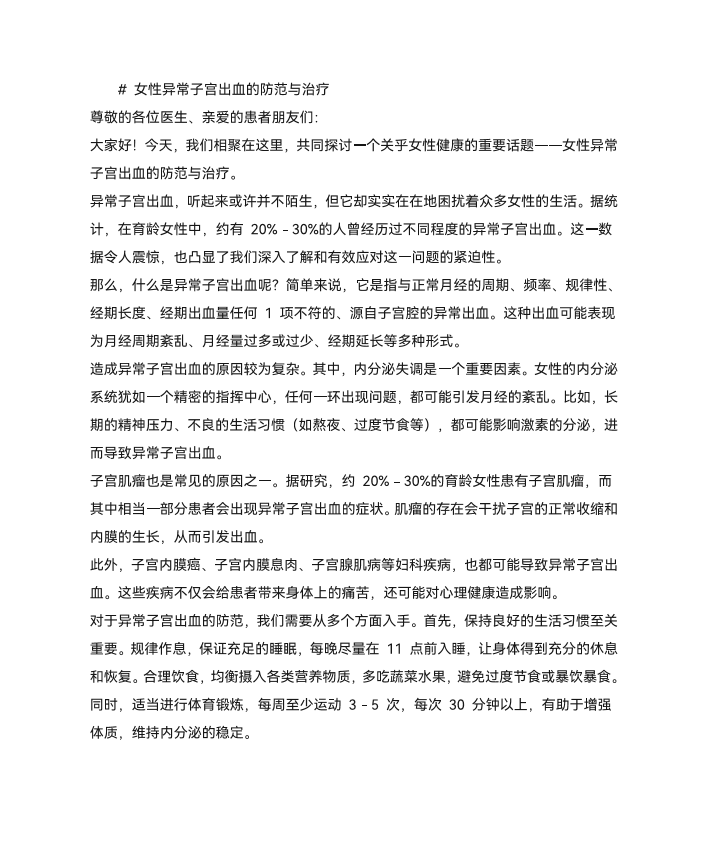 异常子宫出血的防范与治疗