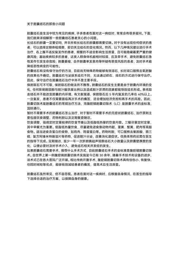 关于胆囊结石的那些小问题