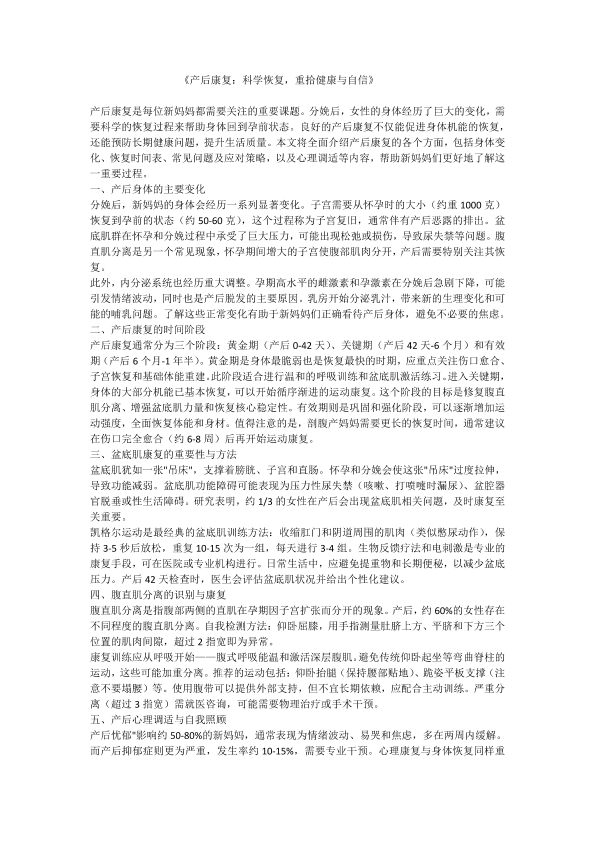 产后康复:科学恢复,重拾健康与自信