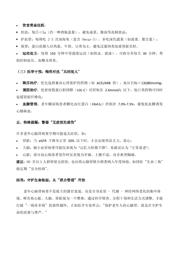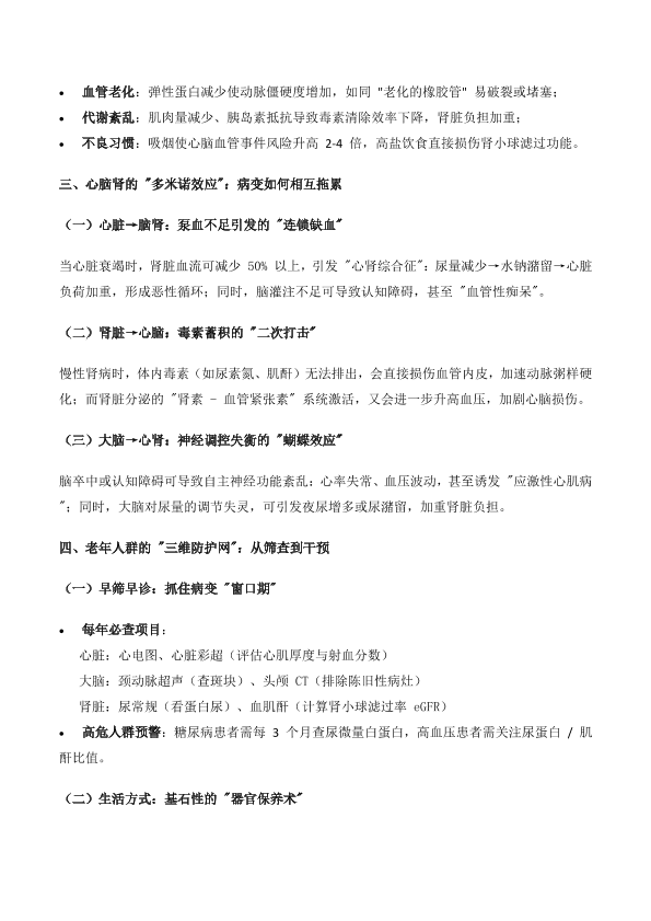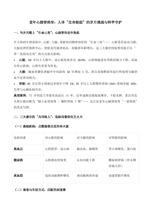 老年心脑肾病变:人体“生命枢纽”的岁月挑战与科学守护