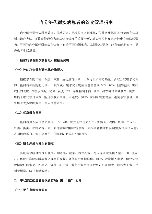 内分泌代谢疾病患者的饮食管理指南