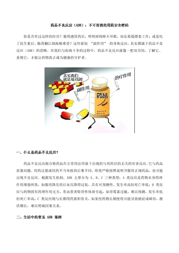 药品不良反应(ADR):不可忽视的用药安全密码