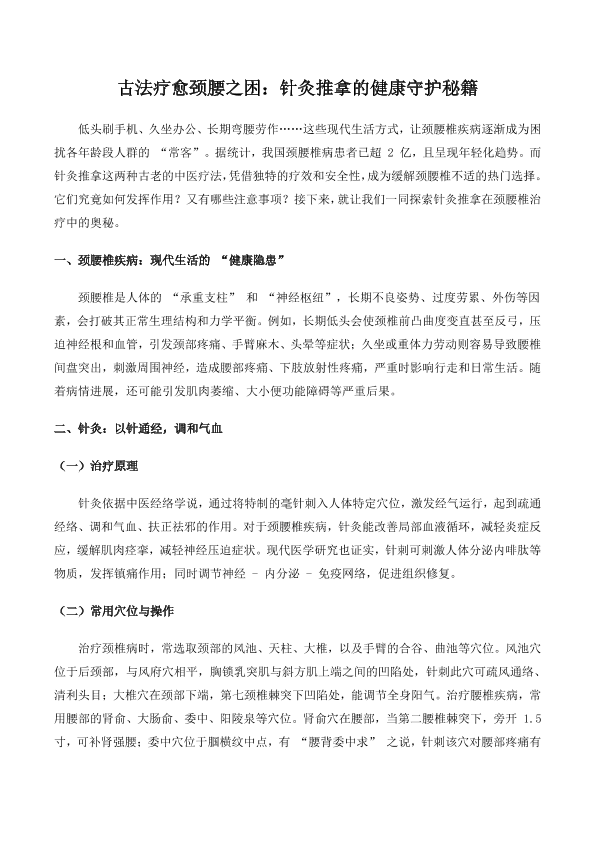 古法疗愈颈腰之困:针灸推拿的健康守护秘籍