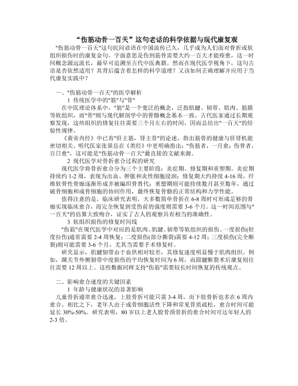 伤筋动骨一百天