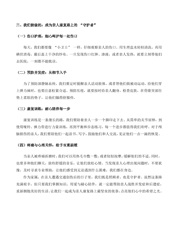 守护与希望:家属必知的交通创伤并发症和后遗症的护理指南