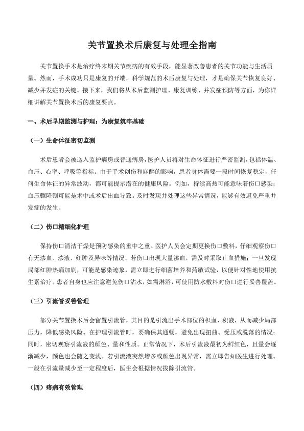 关节置换术后康复与处理全指南