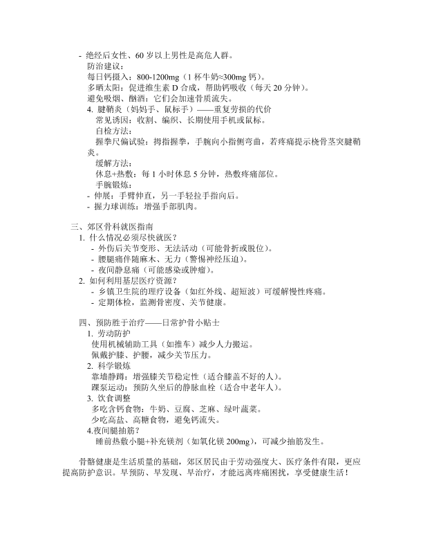 郊区骨科健康指南