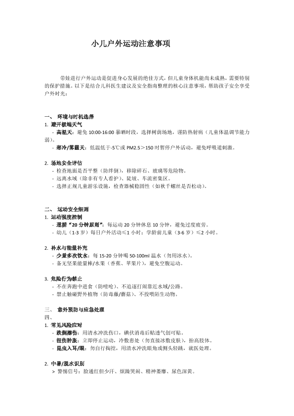 小儿户外运动注意事项