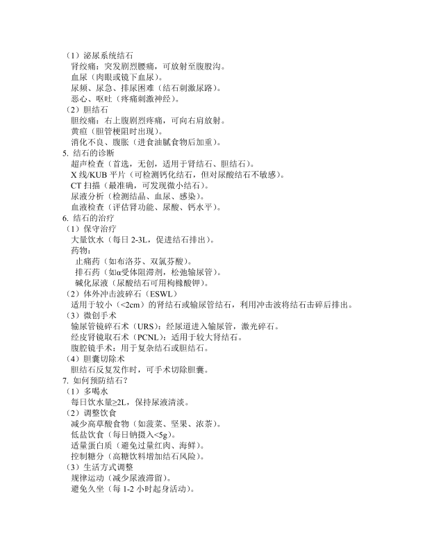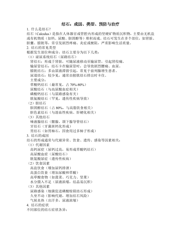 结石:成因、类型、预防与治疗