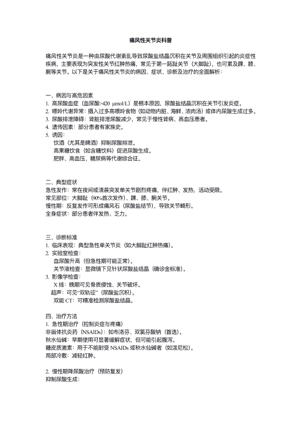 痛风性关节炎科普