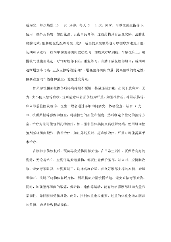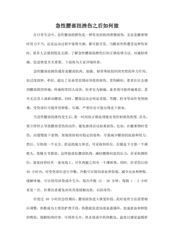 急性腰部扭挫伤之后如何做