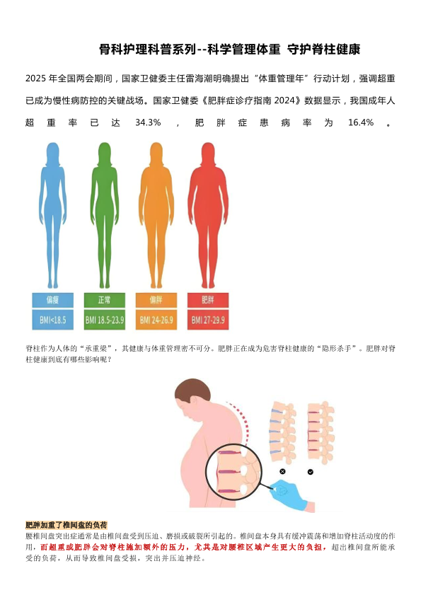 科学管理体重守护脊柱健康